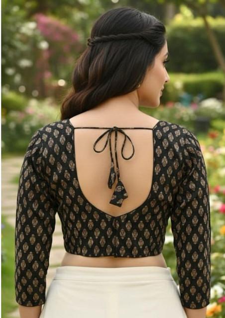 Generic Women's Ajrakh Cotton Halter Neck Padded Blouse (Black, 38 Ready Size (Self-Alterable 36–40)