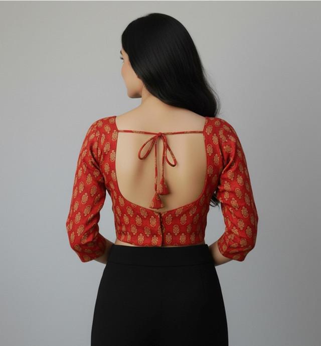 Generic Women's Ajrakh Cotton Printed Halter Neck Padded Blouse (Red 38 Ready (Self Alterable 36–40)
