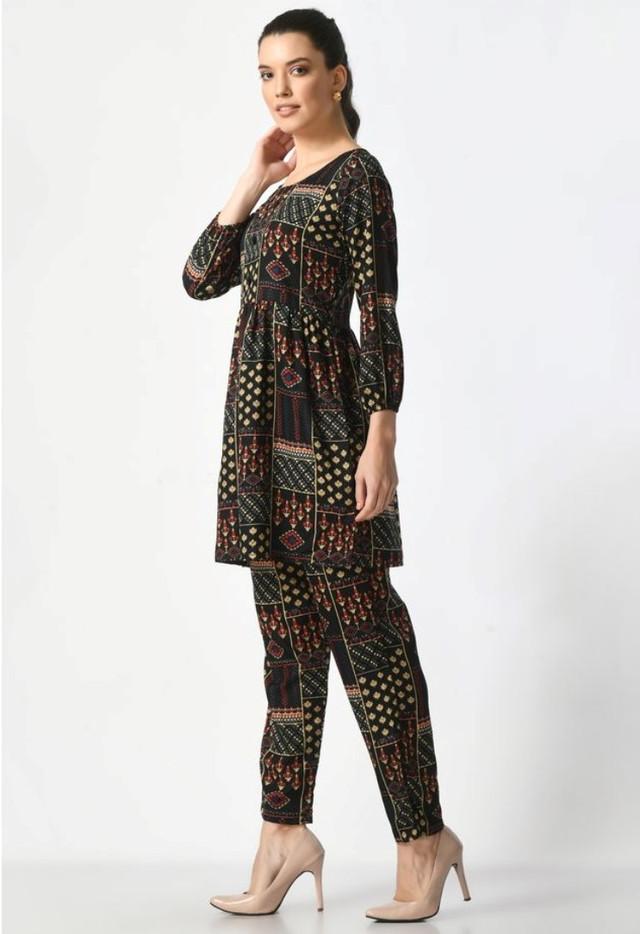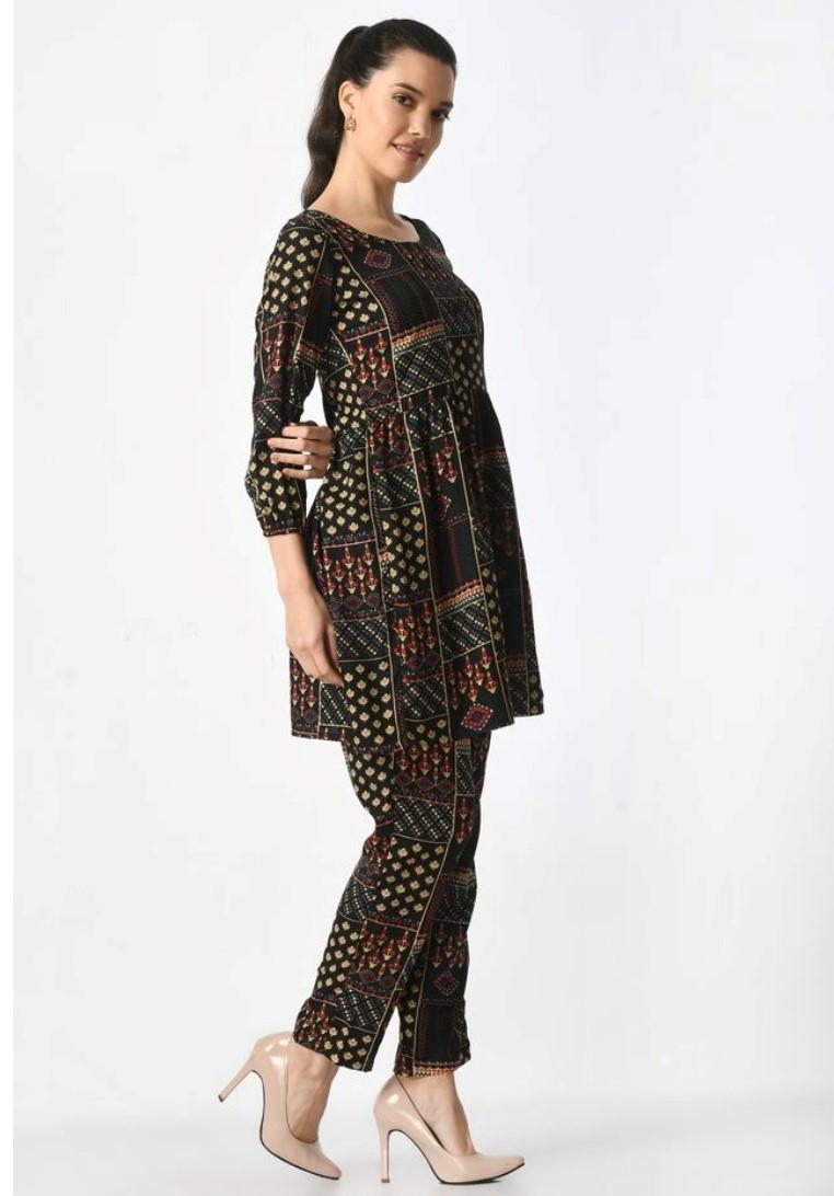 Generic Women's Casual Crepe 3-4th Sleeves Cord Set (Black)