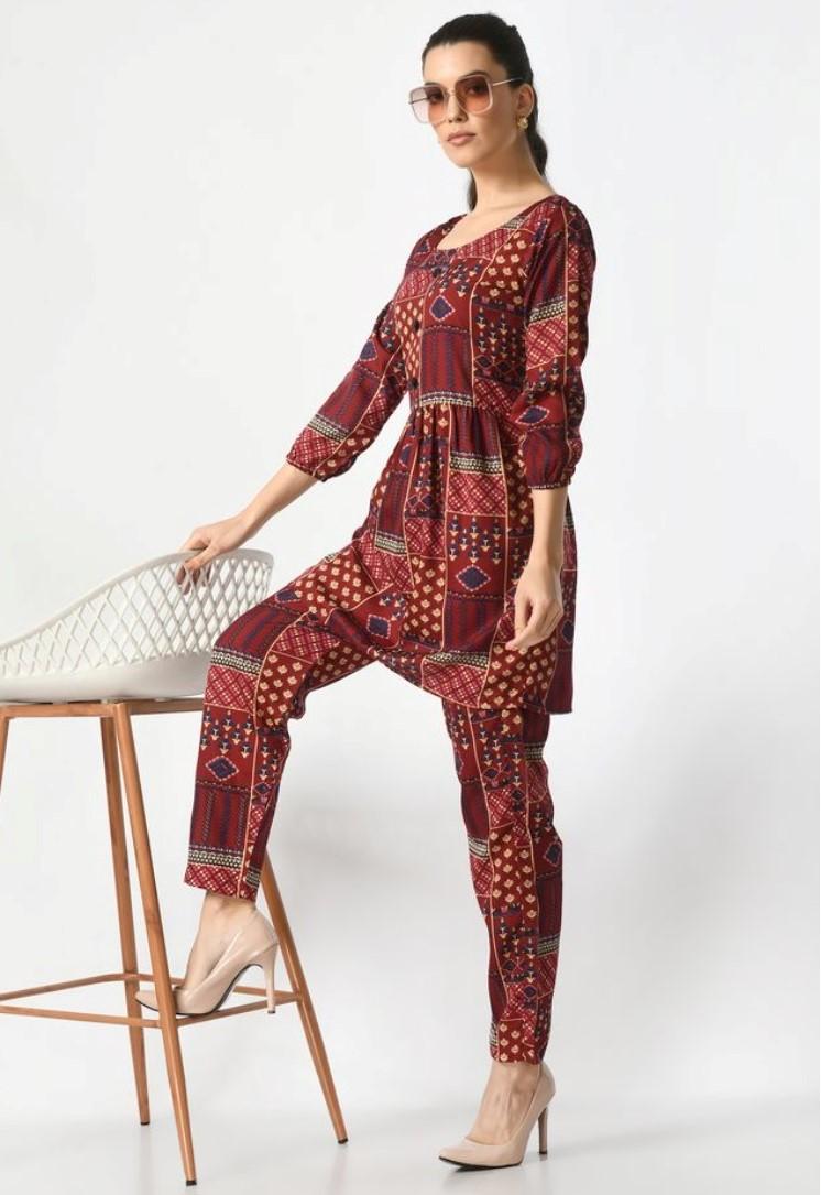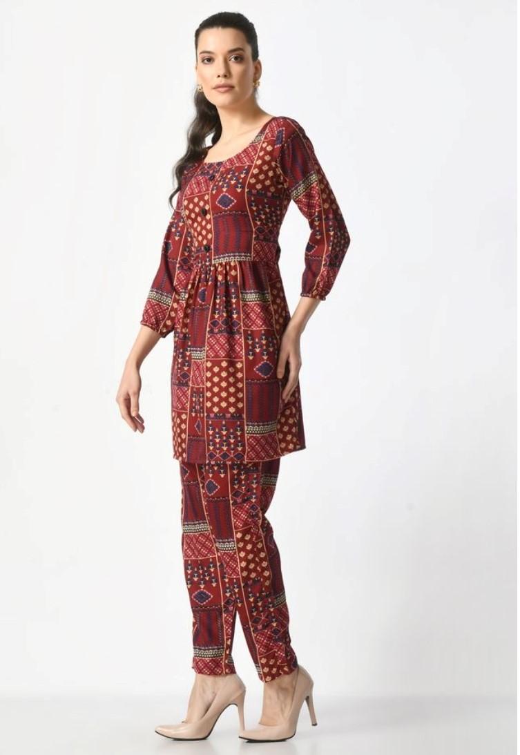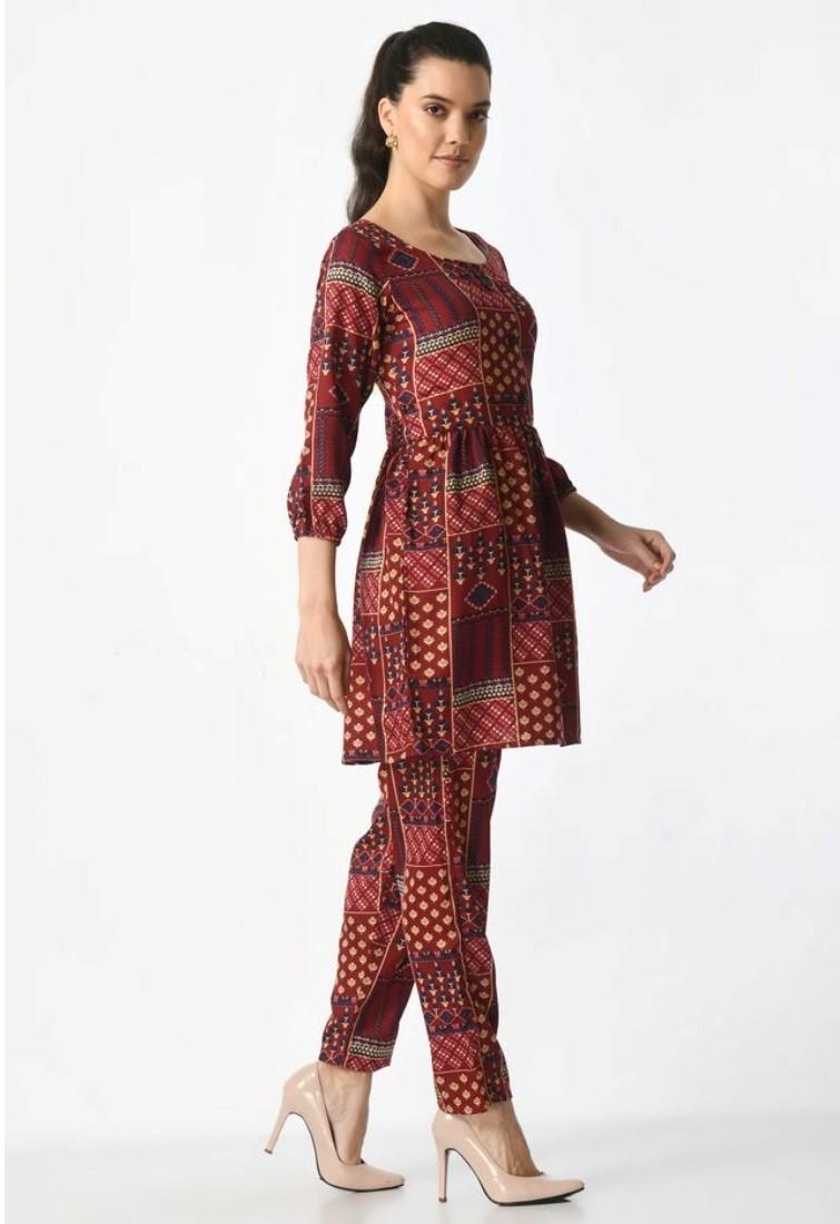 Generic Women's Casual Crepe 3-4th Sleeves Cord Set (Maroon)