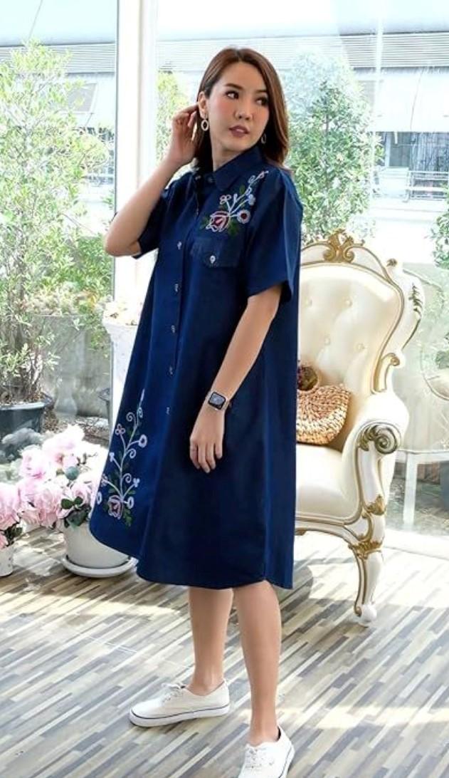 Generic Women's Casual Denim Half Sleeves Dress (Blue)