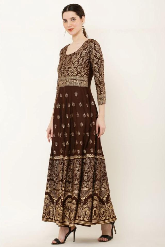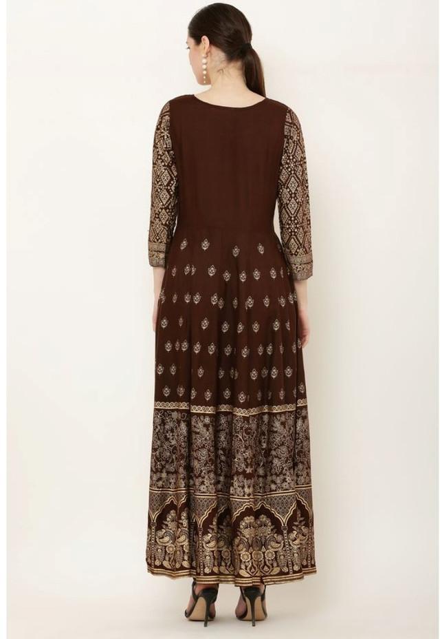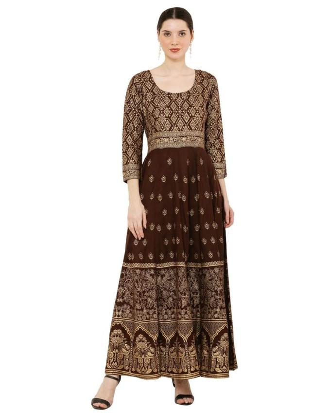 Generic Women's Casual Rayon 3-4th Sleeves Anarkali Kurti (Brown)