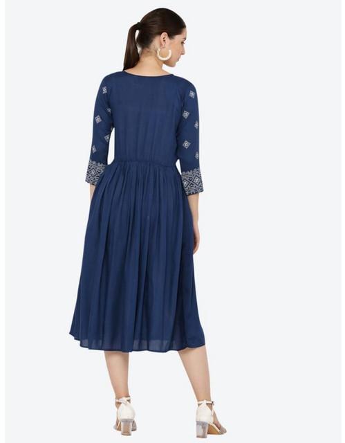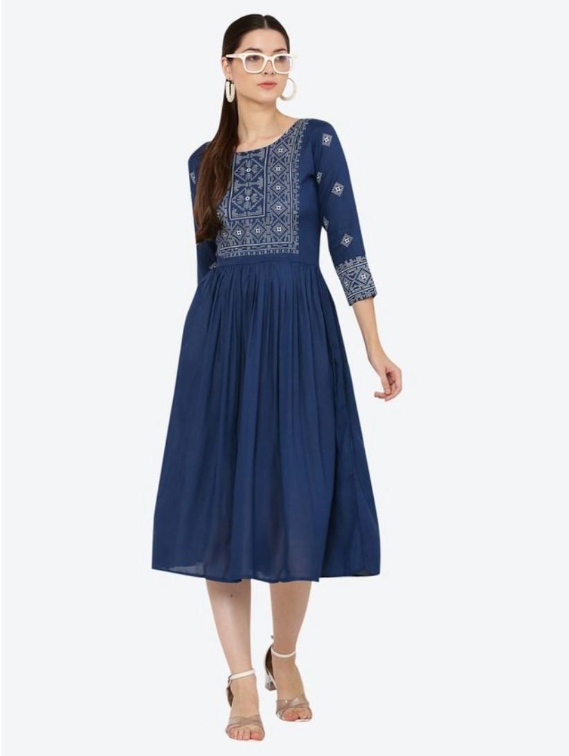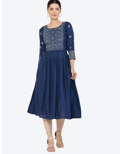 Generic Women's Casual Rayon 3-4th Sleeves Kurti (Blue)