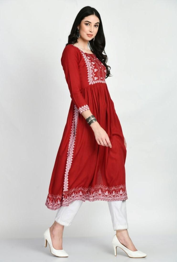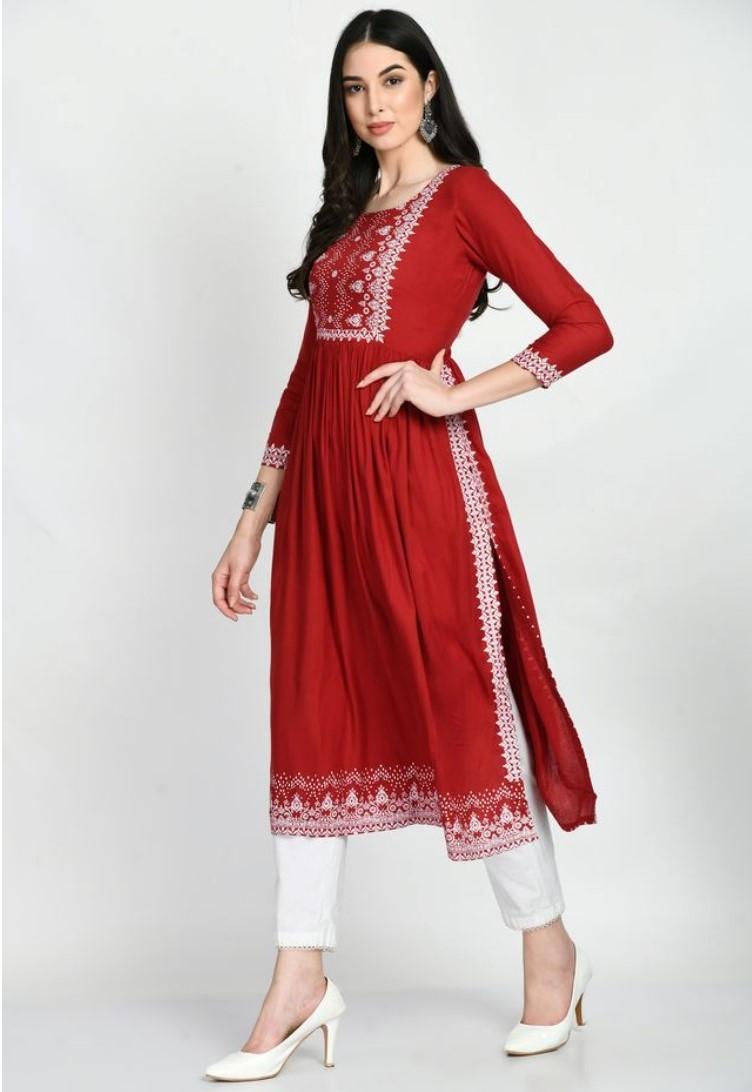 Women's Casual Rayon 3-4th Sleeves Kurti