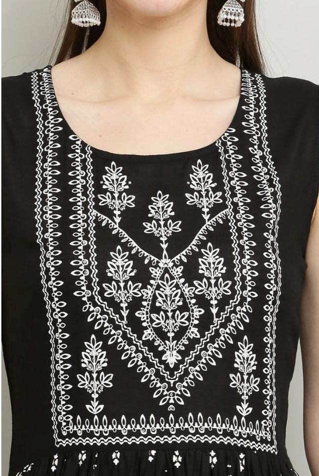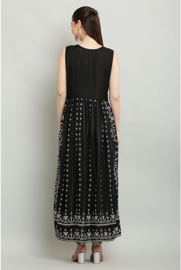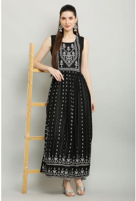 Generic Women's Casual Rayon Sleeveless Kurti (Black)