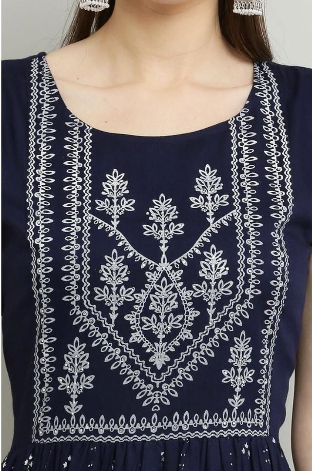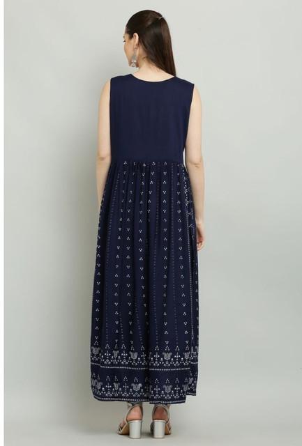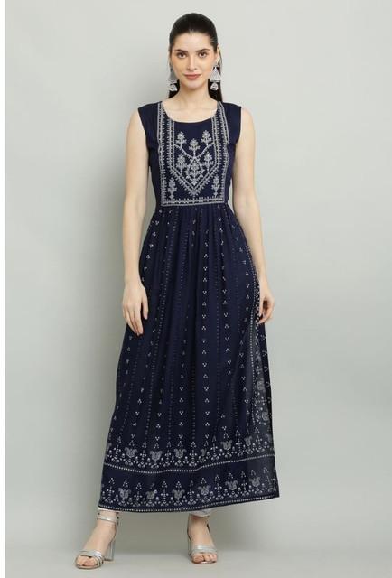 Generic Women's Casual Rayon Sleeveless Kurti (Blue)