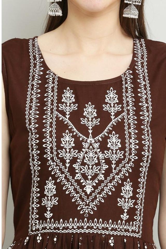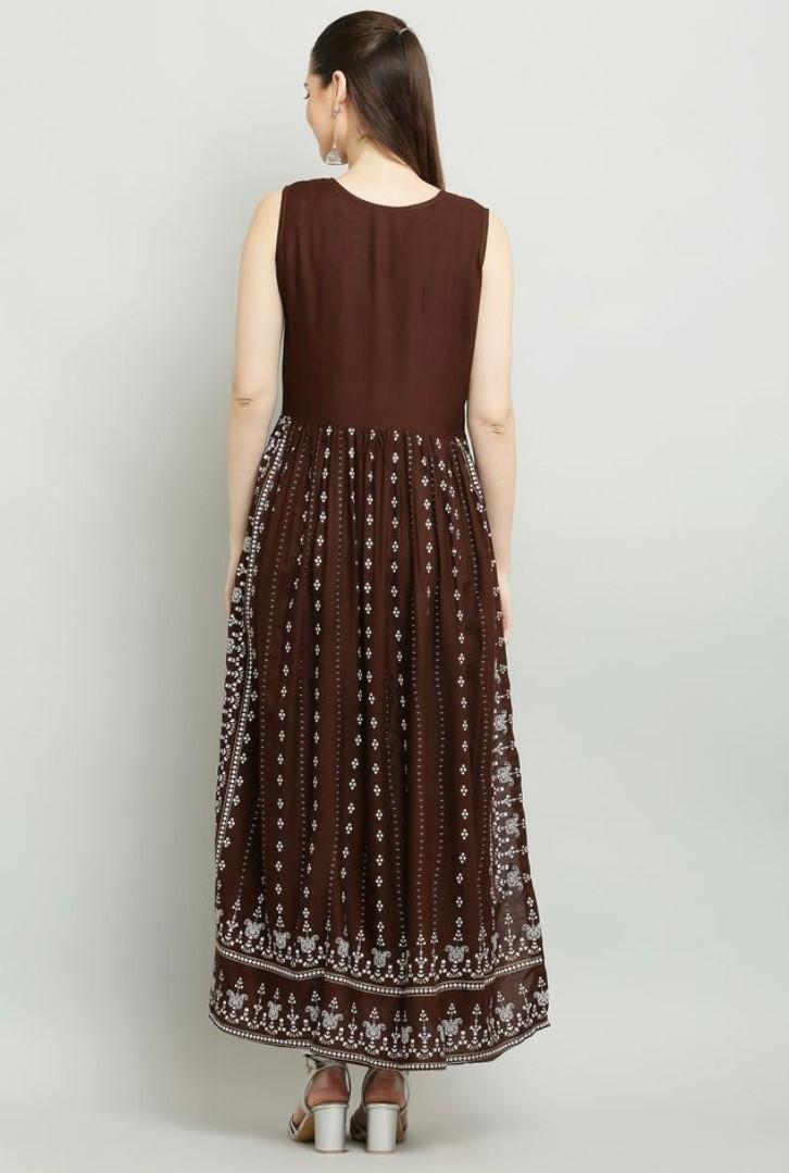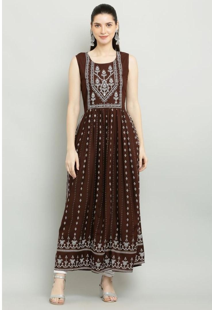 Generic Women's Casual Rayon Sleeveless Kurti (Brown)