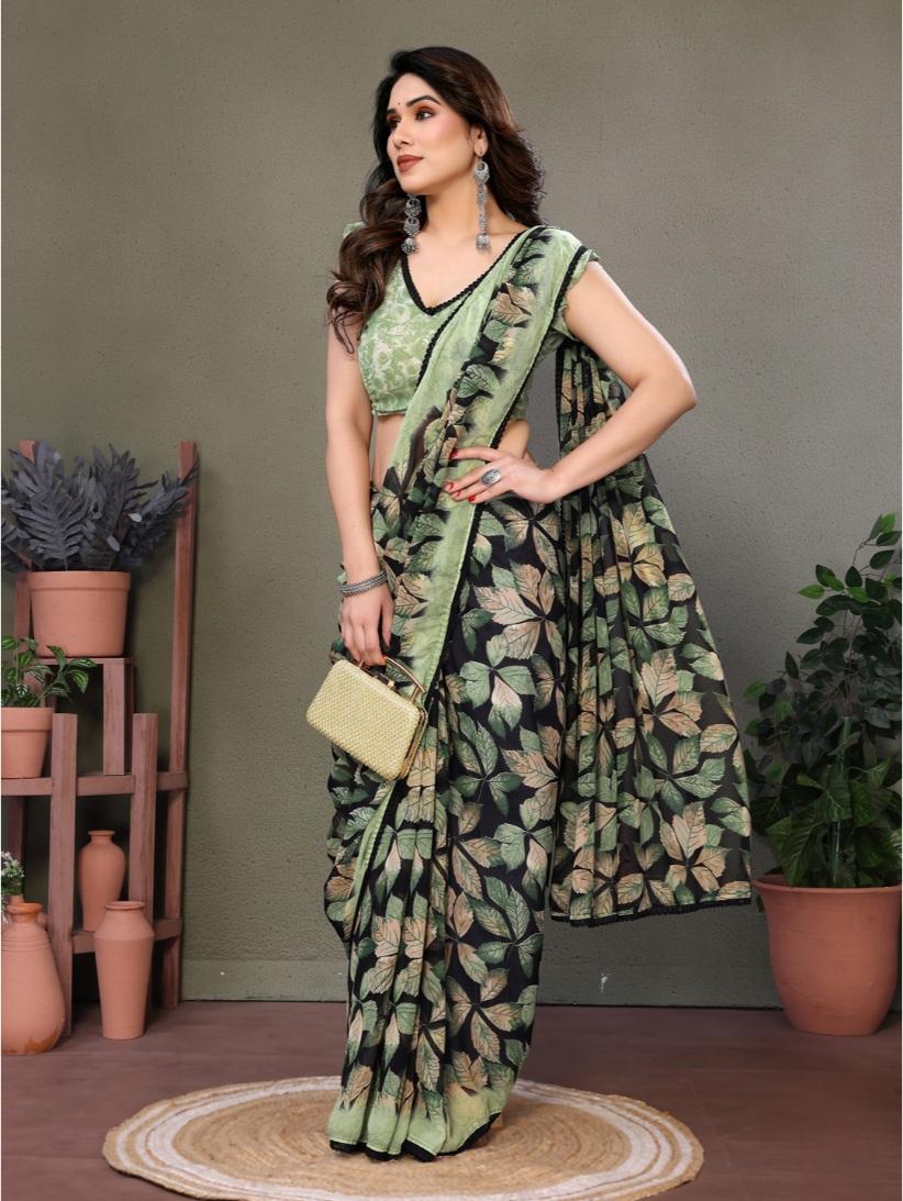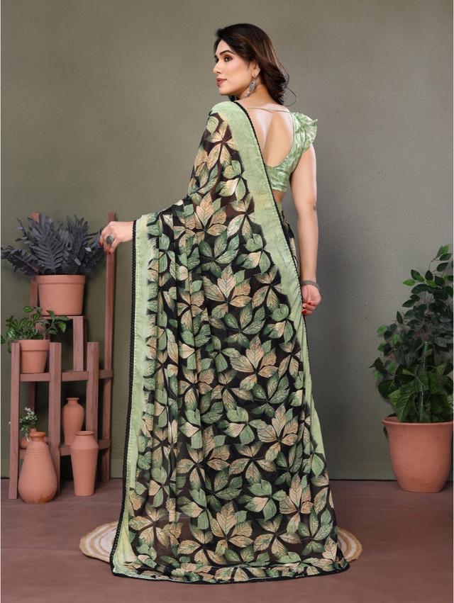 Women's Chiffon Printed Saree With Unstitched Blouse 5.5Mtr