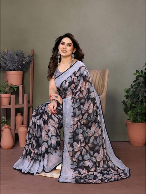 Women's Chiffon Printed Saree With Unstitched Blouse 5.5Mtr