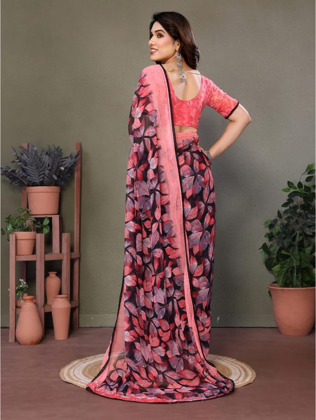 Generic Women's Chiffon Printed Saree With Unstitched Blouse 5.5Mtr (Pink)