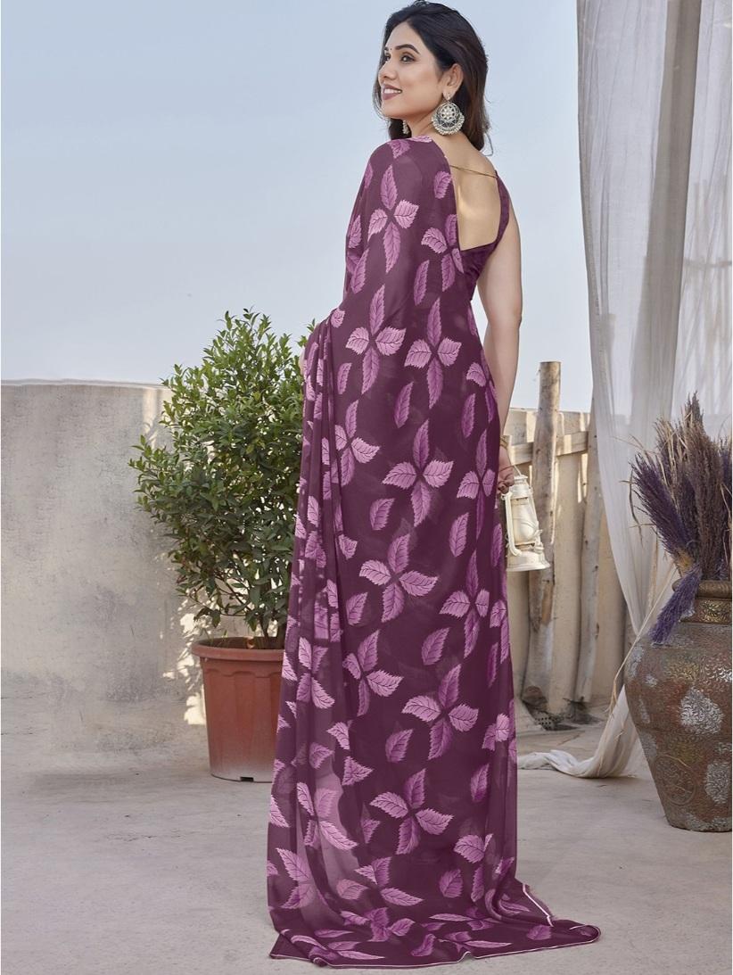 Generic Women's Chiffon Printed Saree With Unstitched Blouse 5.5Mtr (Purple)