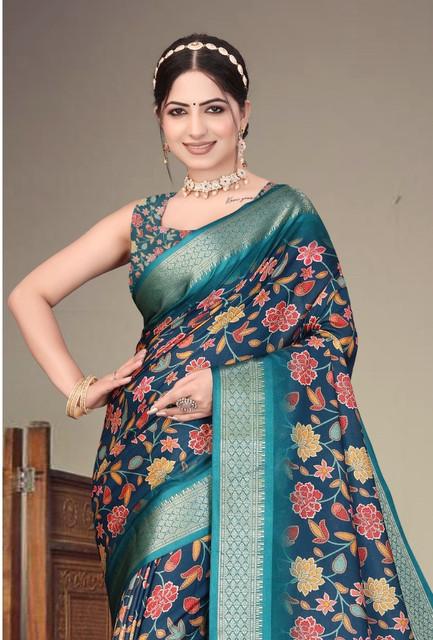 Women's Cotton Silk Printed Saree With Unstitched Blouse 5.5Mtr