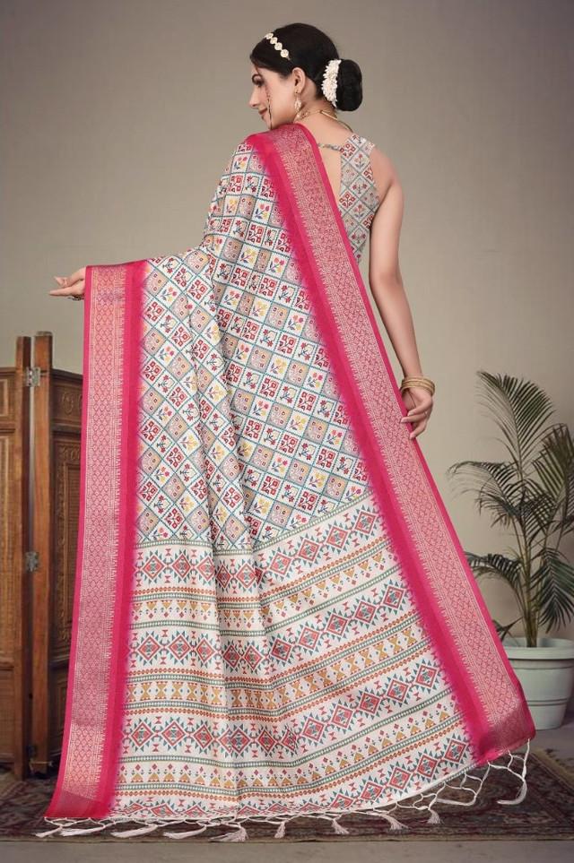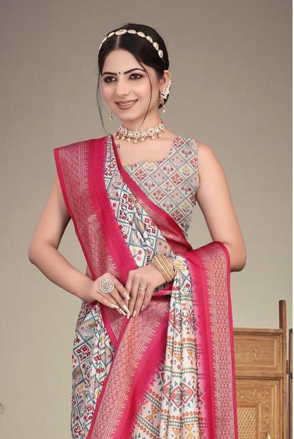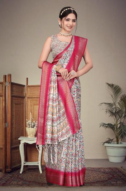 Women's Cotton Silk Printed Saree With Unstitched Blouse 5.5Mtr