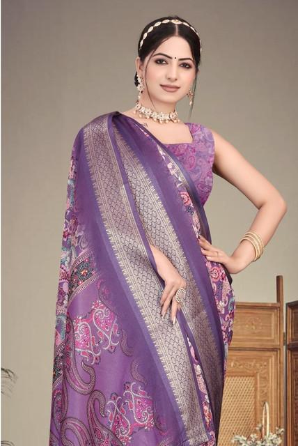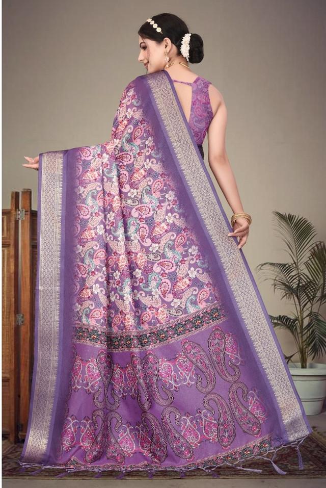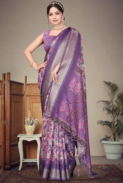 Generic Women's Cotton Silk Printed Saree With Unstitched Blouse 5.5Mtr (Purple)