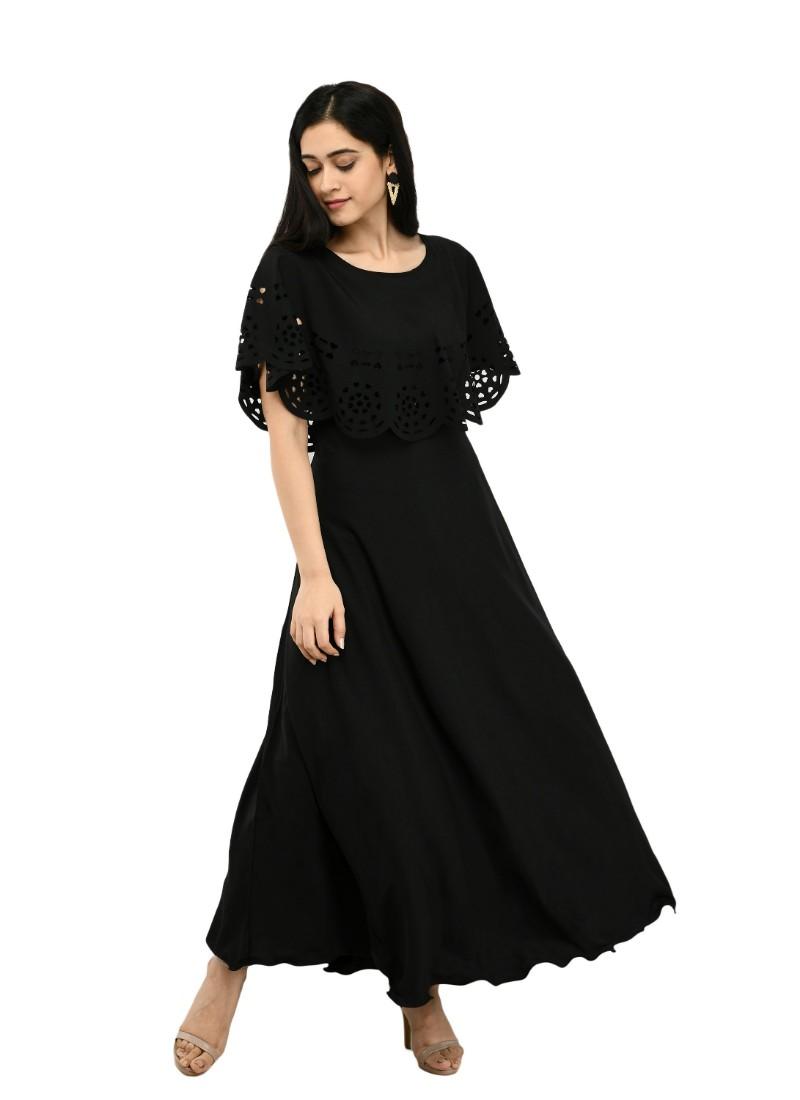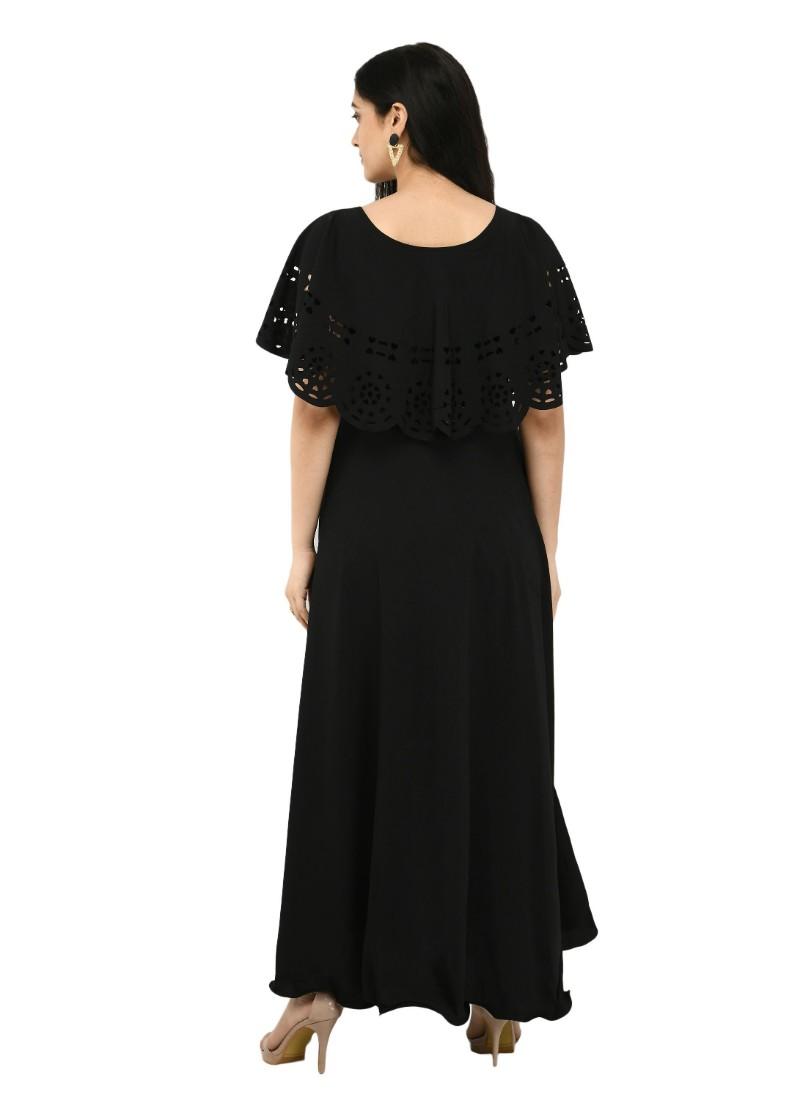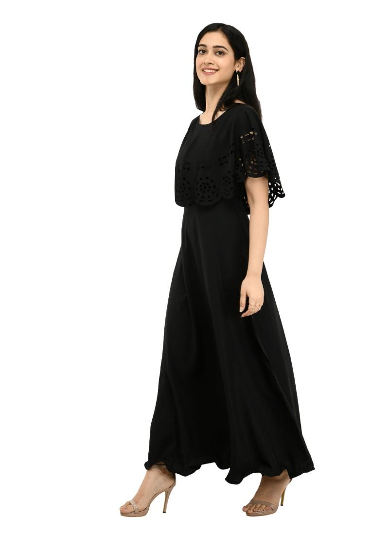 Generic Women's Crepe Solid Sleeveless Full Length Gown(Black)