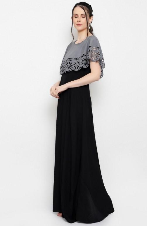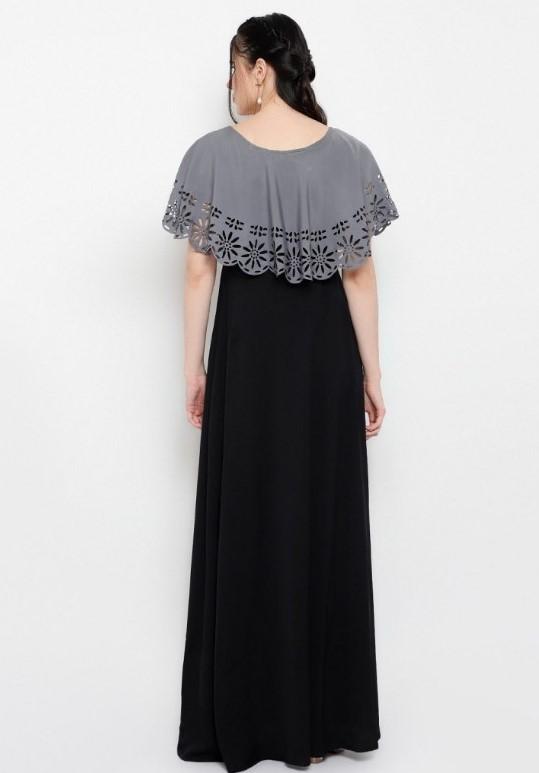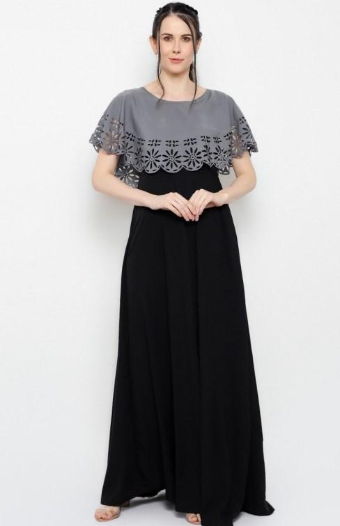 Generic Women's Crepe Solid Sleeveless Full Length Gown(Grey Black)