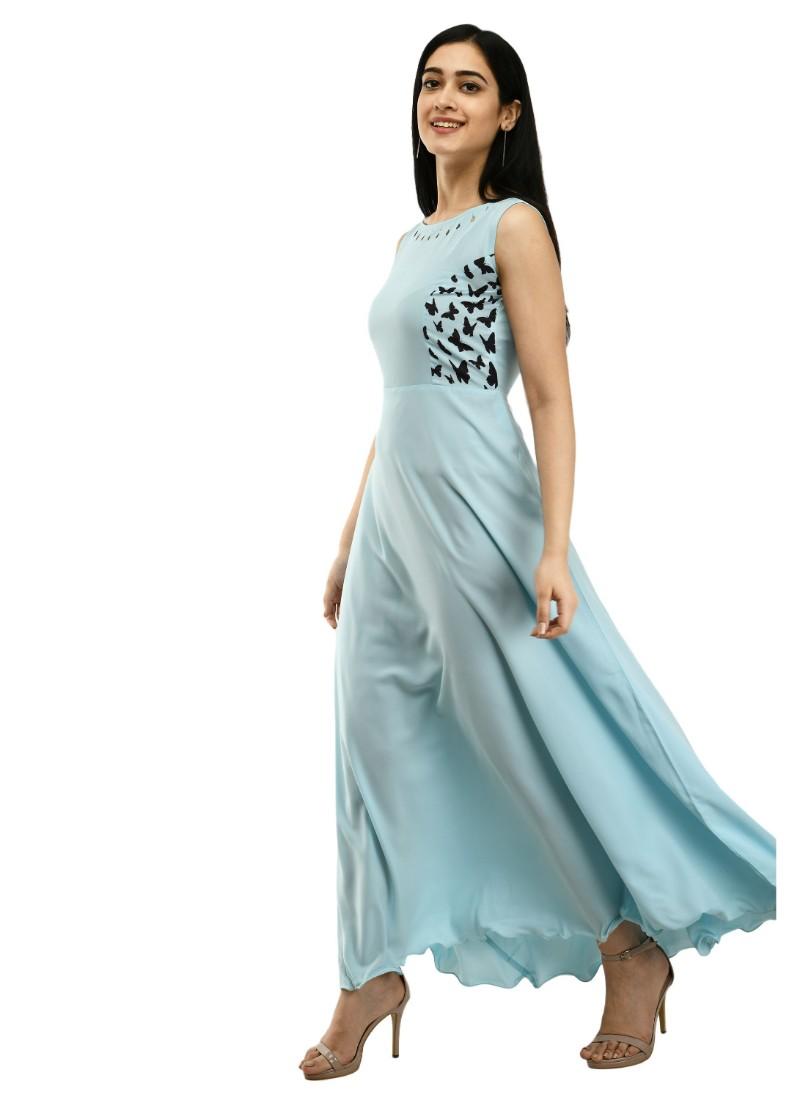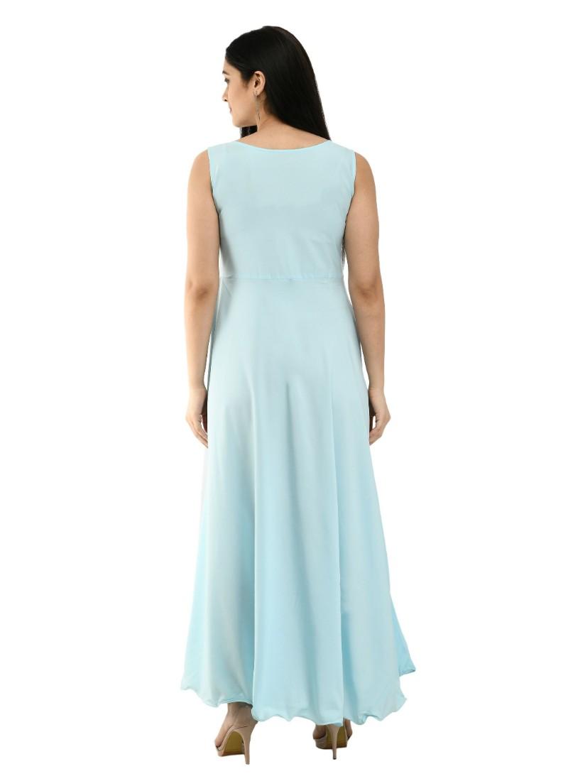 Generic Women's Crepe Solid Sleeveless Full Length Gown(Light Blue)