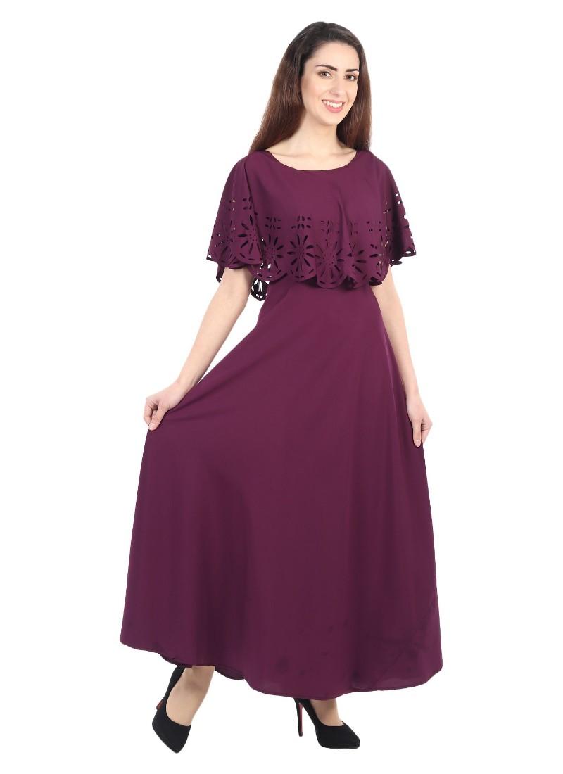Generic Women's Crepe Solid Sleeveless Full Length Gown(Maroon)
