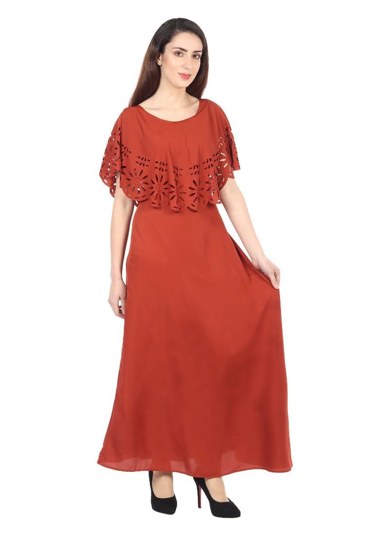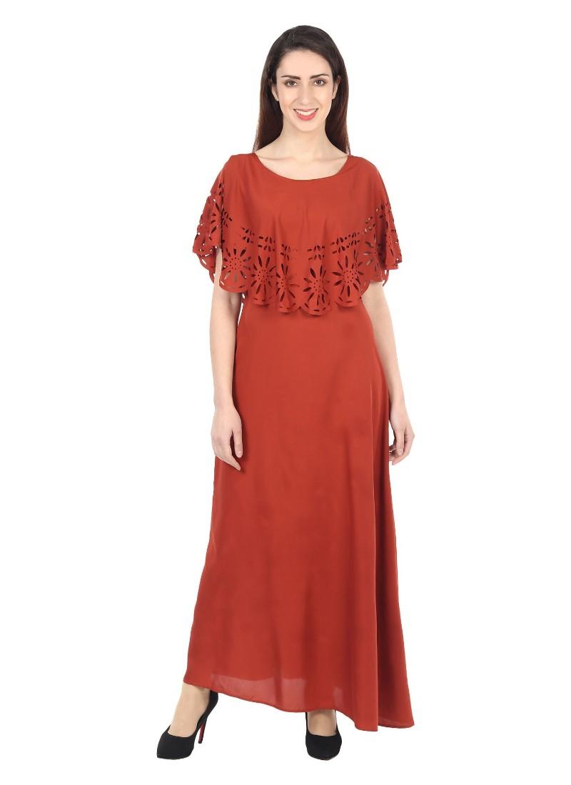Generic Women's Crepe Solid Sleeveless Full Length Gown(Red)
