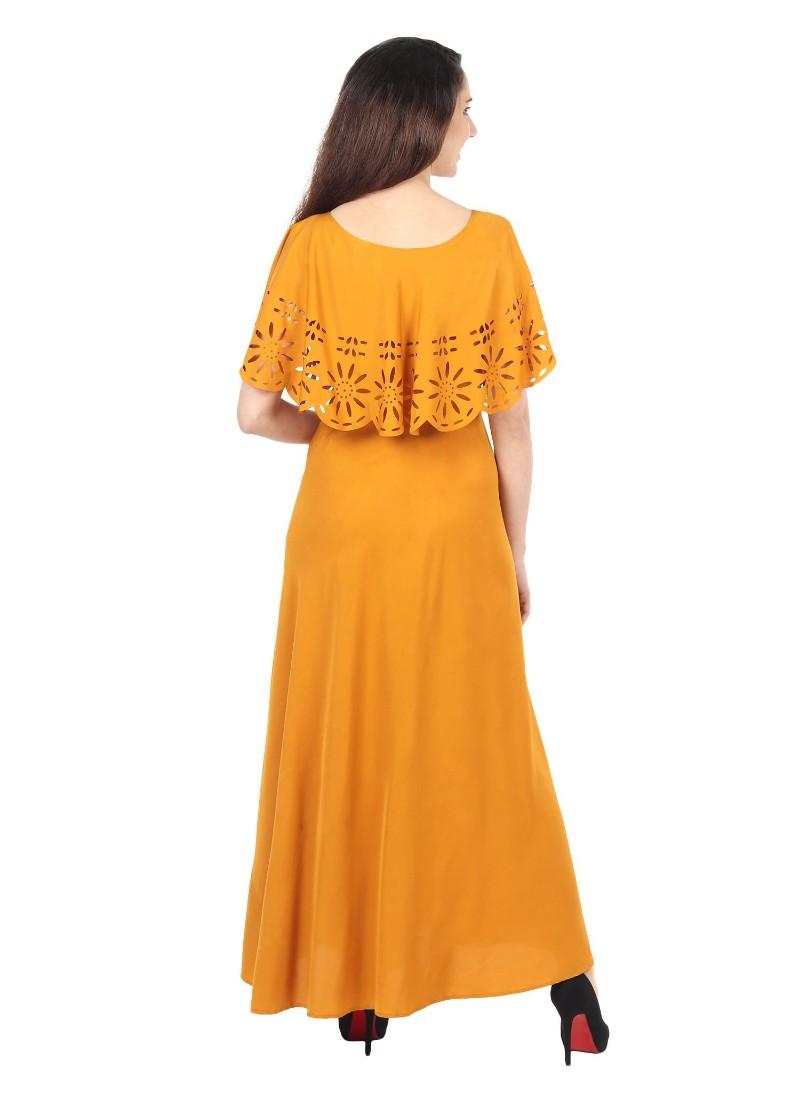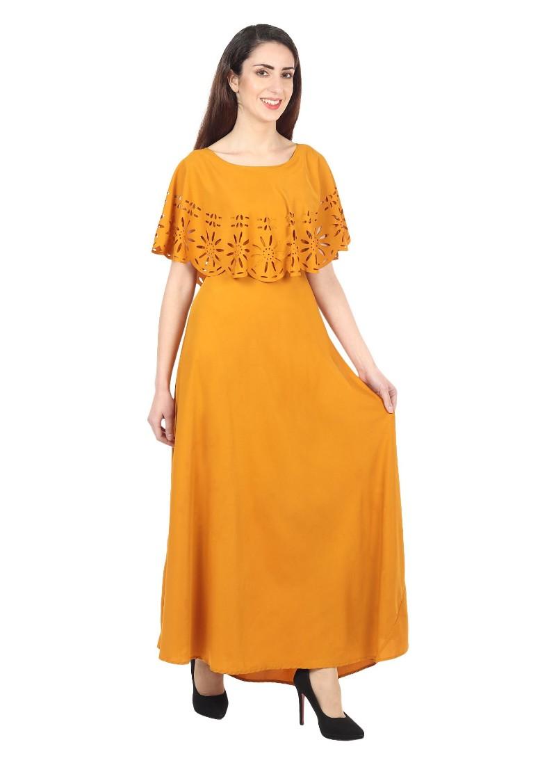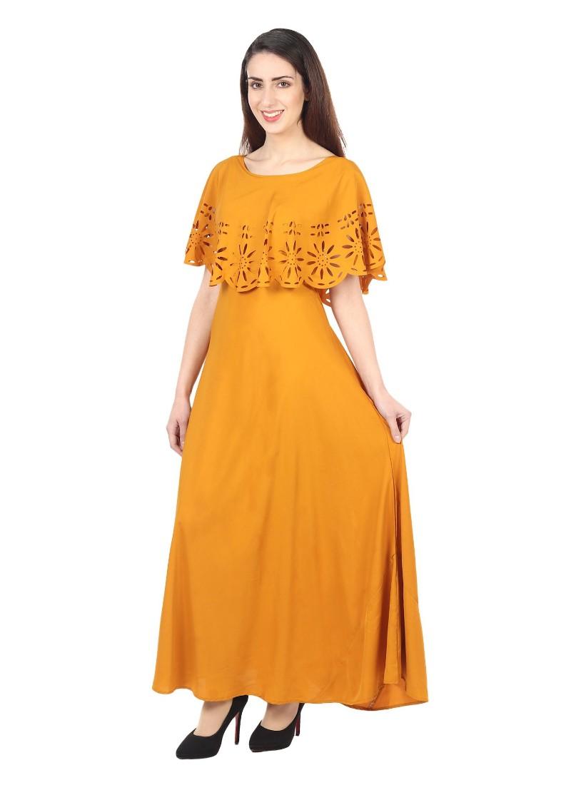 Generic Women's Crepe Solid Sleeveless Full Length Gown(Yellow)