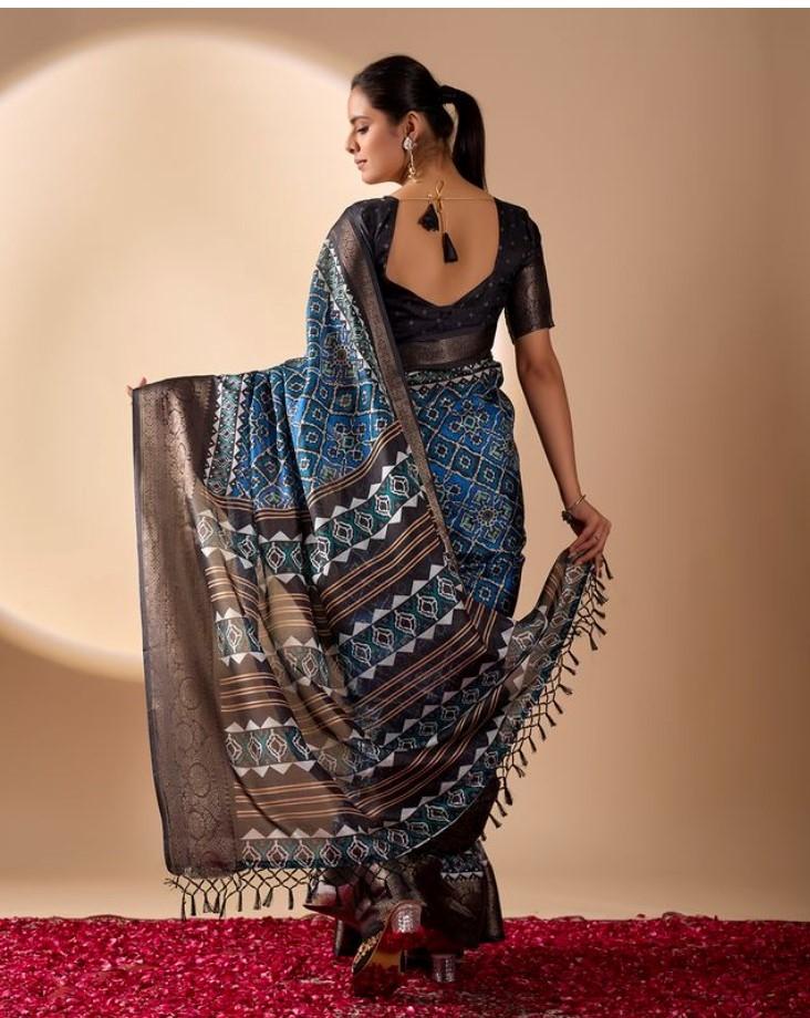 Generic Women's Faux_Art_Silk Printed Saree With Unstitched Blouse 5.5Mtr (Blue)