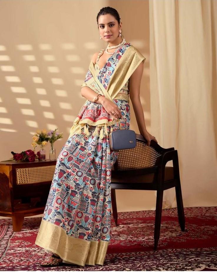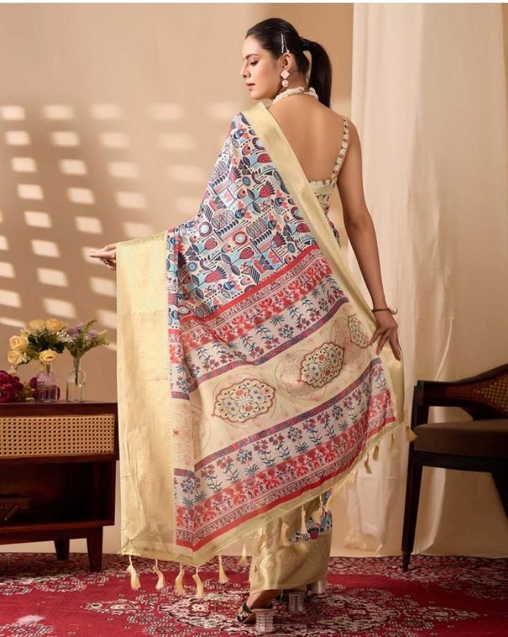 Women's Faux_Banarasi_Silk Printed Saree With Unstitched Blouse 5.5Mtr