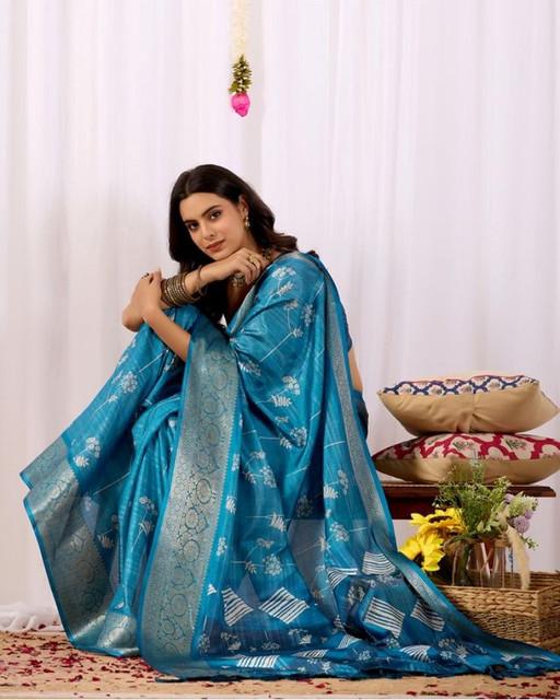 Generic Women's Faux_Banarasi_Silk Woven Saree With Unstitched Blouse 5.5Mtr (Turquoise)