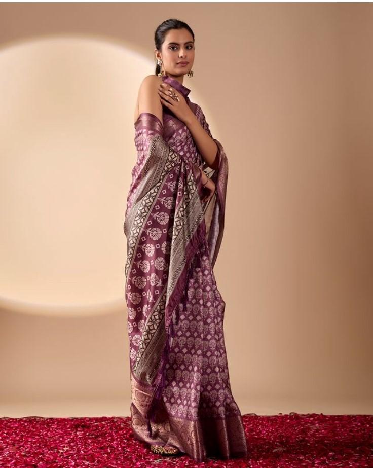 Generic Women's Faux_Banarasi Woven Saree With Unstitched Blouse 5.5Mtr (Purple)
