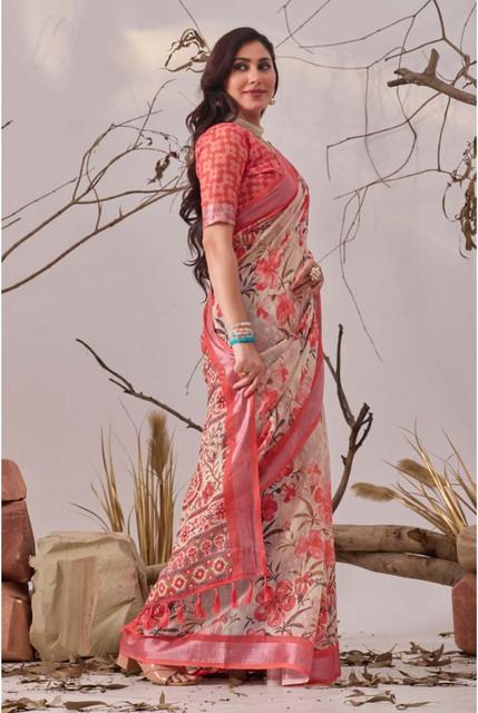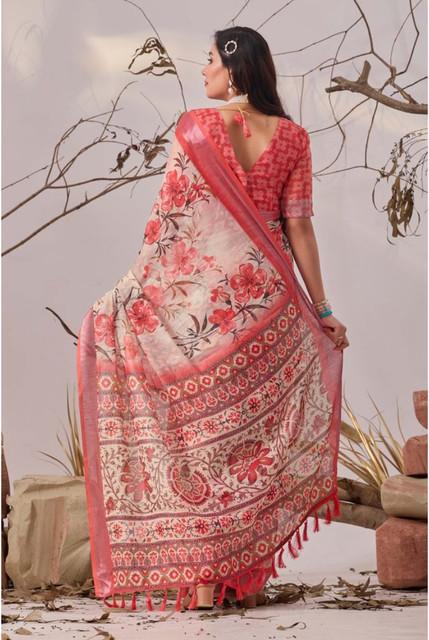 Women's Faux_Linen Printed Saree With Unstitched Blouse 5.5Mtr