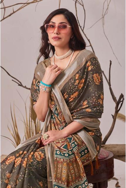Women's Faux_Linen Printed Saree With Unstitched Blouse 5.5Mtr