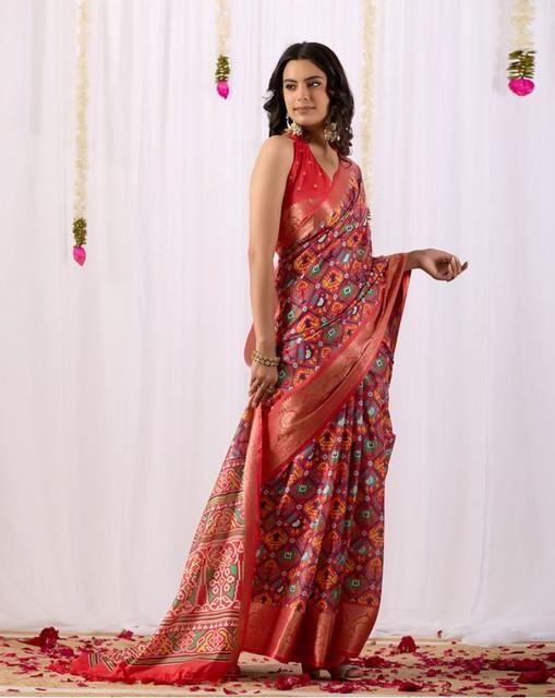 Women's Faux_Patola Woven Saree With Unstitched Blouse 5.5Mtr