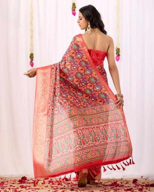 Generic Women's Faux_Patola Woven Saree With Unstitched Blouse 5.5Mtr (Red)