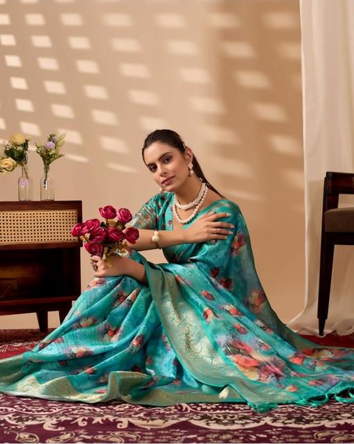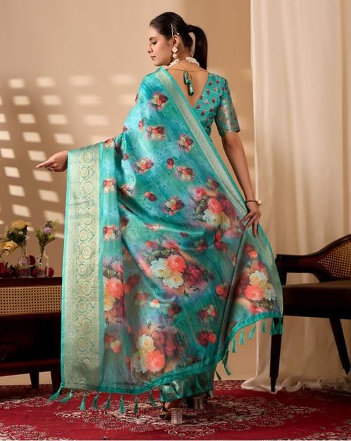 Generic Women's Faux_Silk Printed Saree With Unstitched Blouse 5.5Mtr (Aqua_Blue)