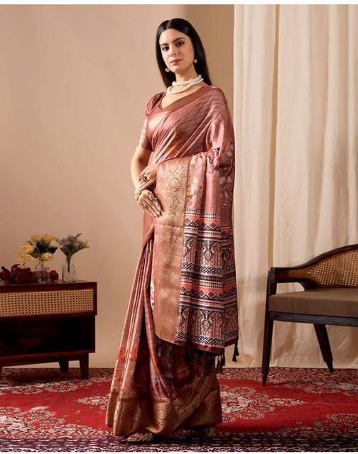 Generic Women's Faux_Silk Printed Saree With Unstitched Blouse 5.5Mtr (Brown)