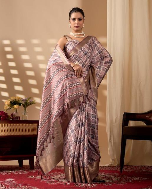 Generic Women's Faux_Silk Printed Saree With Unstitched Blouse 5.5Mtr (Light_Mauve)
