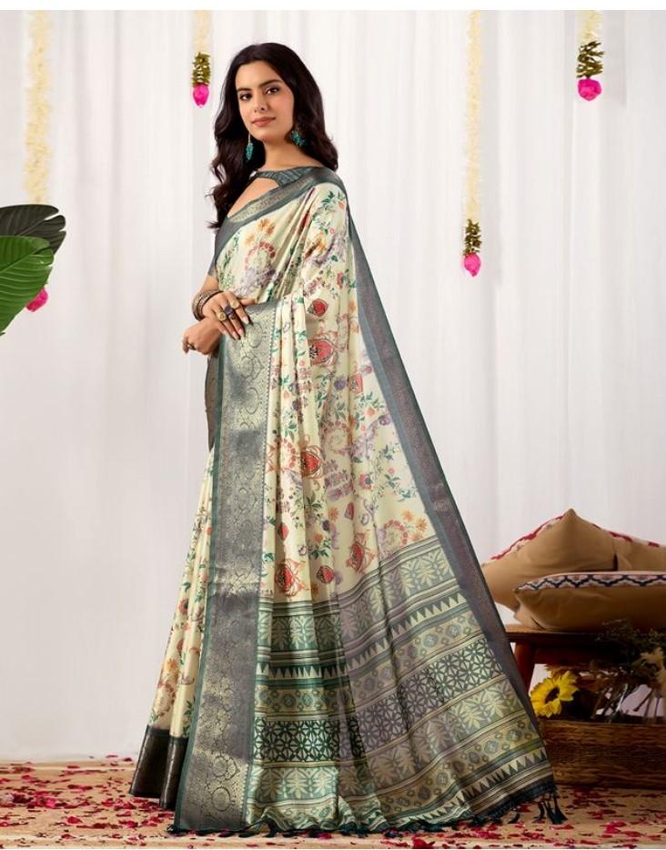 Generic Women's Faux_Silk Printed Saree With Unstitched Blouse 5.5Mtr (Off_White)