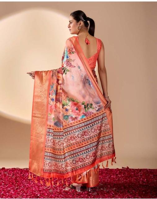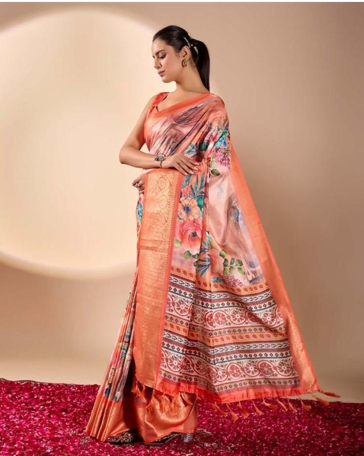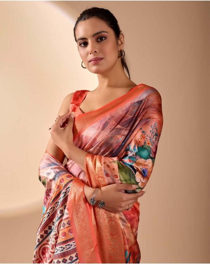 Generic Women's Faux_Silk Printed Saree With Unstitched Blouse 5.5Mtr (Peach)
