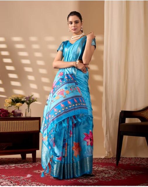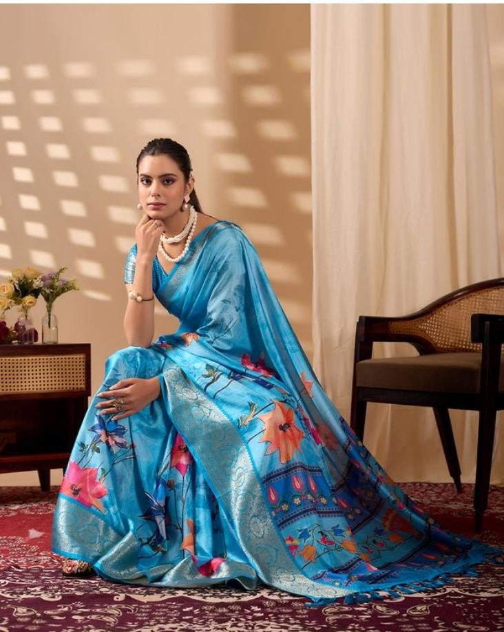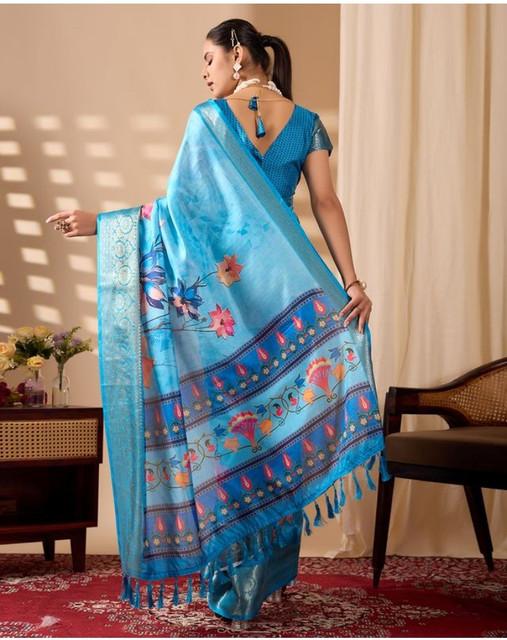 Generic Women's Faux_Silk Printed Saree With Unstitched Blouse 5.5Mtr (Sky_Blue)
