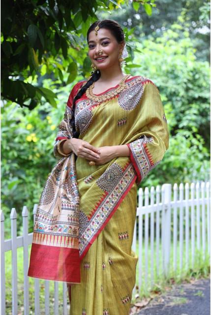 Women's Faux_Tussar_Silk Printed Saree With Unstitched Blouse 5.5Mtr