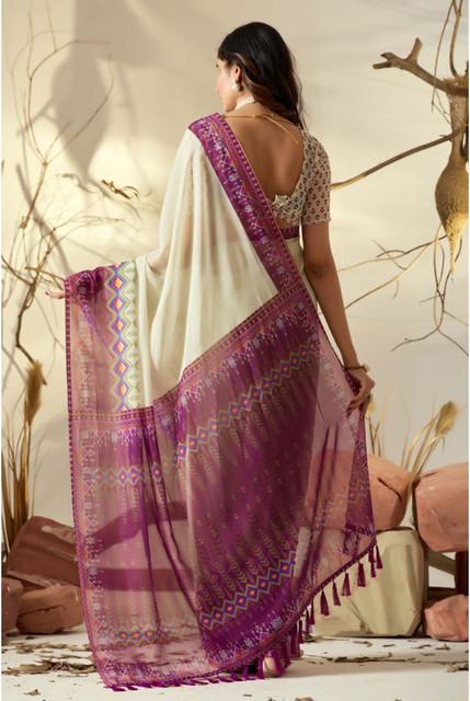 Women's Georgette Printed Saree With Unstitched Blouse 5.5Mtr