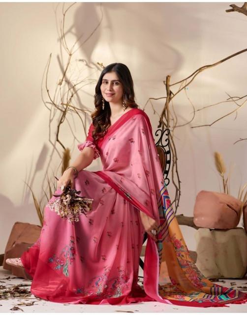 Generic Women's Georgette Printed Saree With Unstitched Blouse 5.5Mtr (Light_Pink)