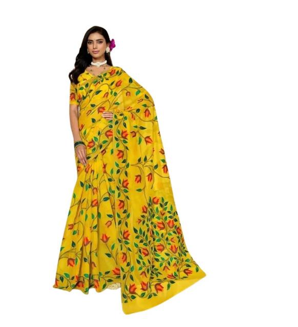 Generic Women's Georgette Printed Saree With Unstitched Blouse 5.5Mtr (Yellow)