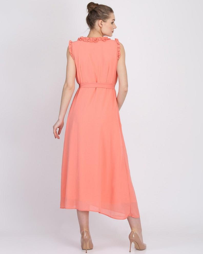 Generic Women's Georgette Solid Sleeveless Full Length Gown(Peach)