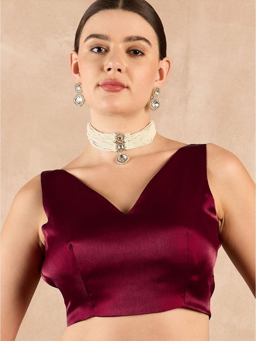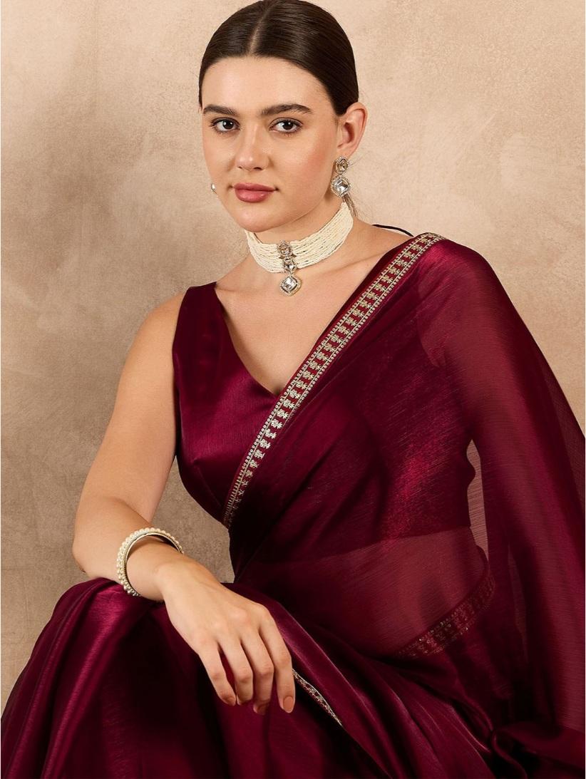 Generic Women's Jimmy Choo solid Saree With Unstitched Blouse 5.5Mtr (Wine )
