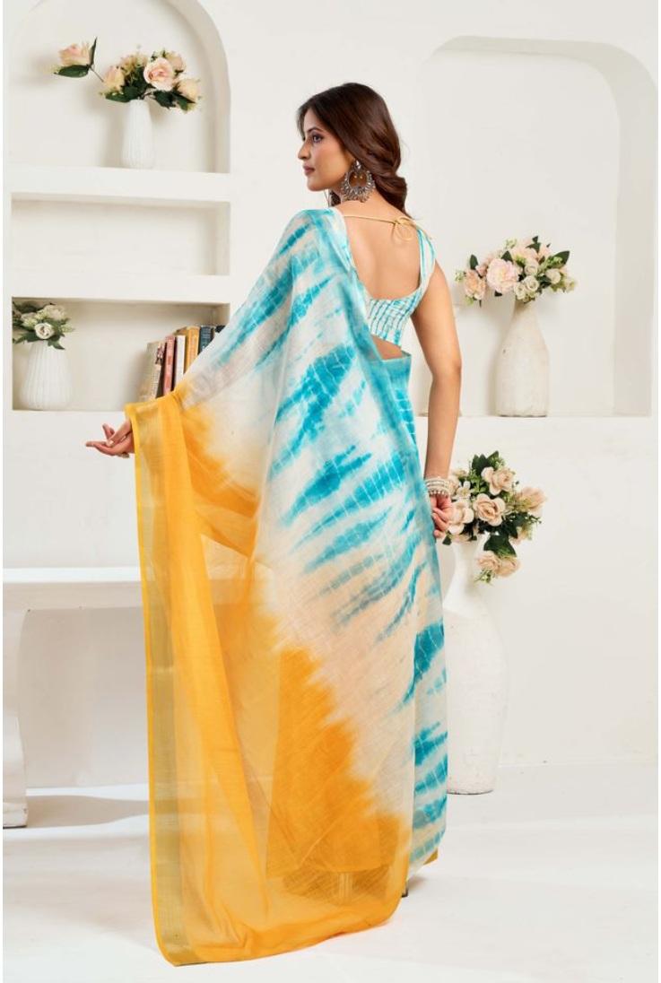 Women's Linen Cotton Printed Ready To Wear Saree With Unstitched Blouse 5.5 Mtr