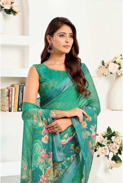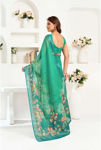 Generic Women's Linen Cotton Printed Ready To Wear Saree With Unstitched Blouse 5.5 Mtr (Green)