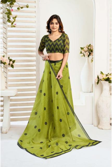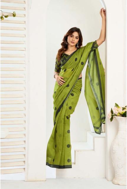 Generic Women's Linen Cotton Printed Ready To Wear Saree With Unstitched Blouse 5.5 Mtr (Green)