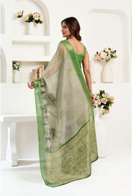 Generic Women's Linen Cotton Printed Ready To Wear Saree With Unstitched Blouse 5.5 Mtr (Light_Green)
