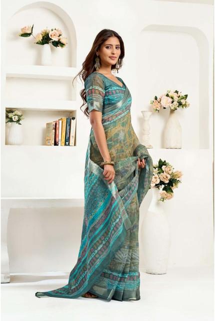 Women's Linen Cotton Printed Ready To Wear Saree With Unstitched Blouse 5.5 Mtr