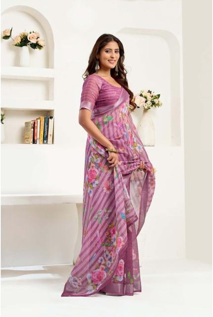 Generic Women's Linen Cotton Printed Ready To Wear Saree With Unstitched Blouse 5.5 Mtr (Light_Mauve)